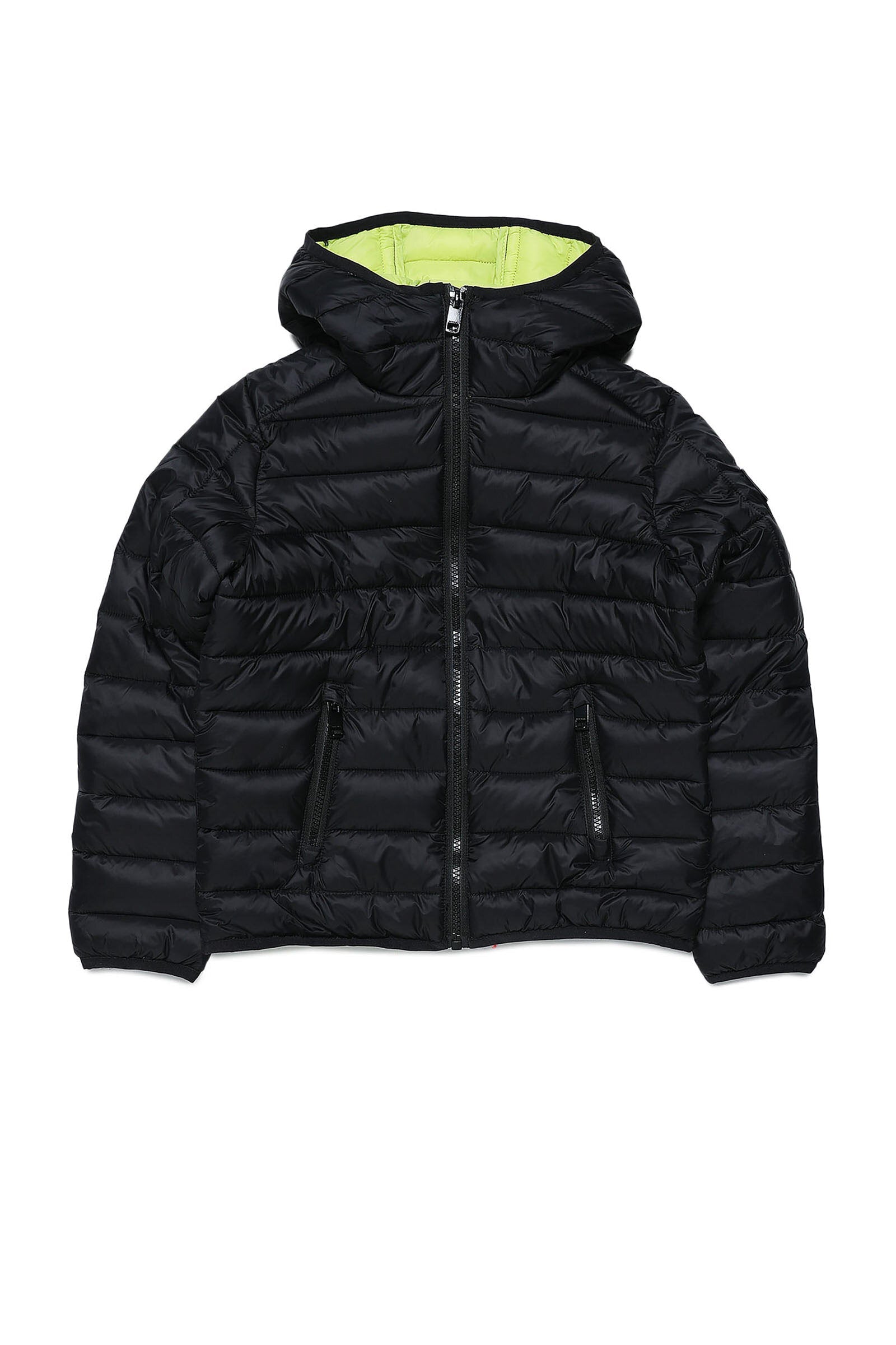 Black quilted jacket with hood