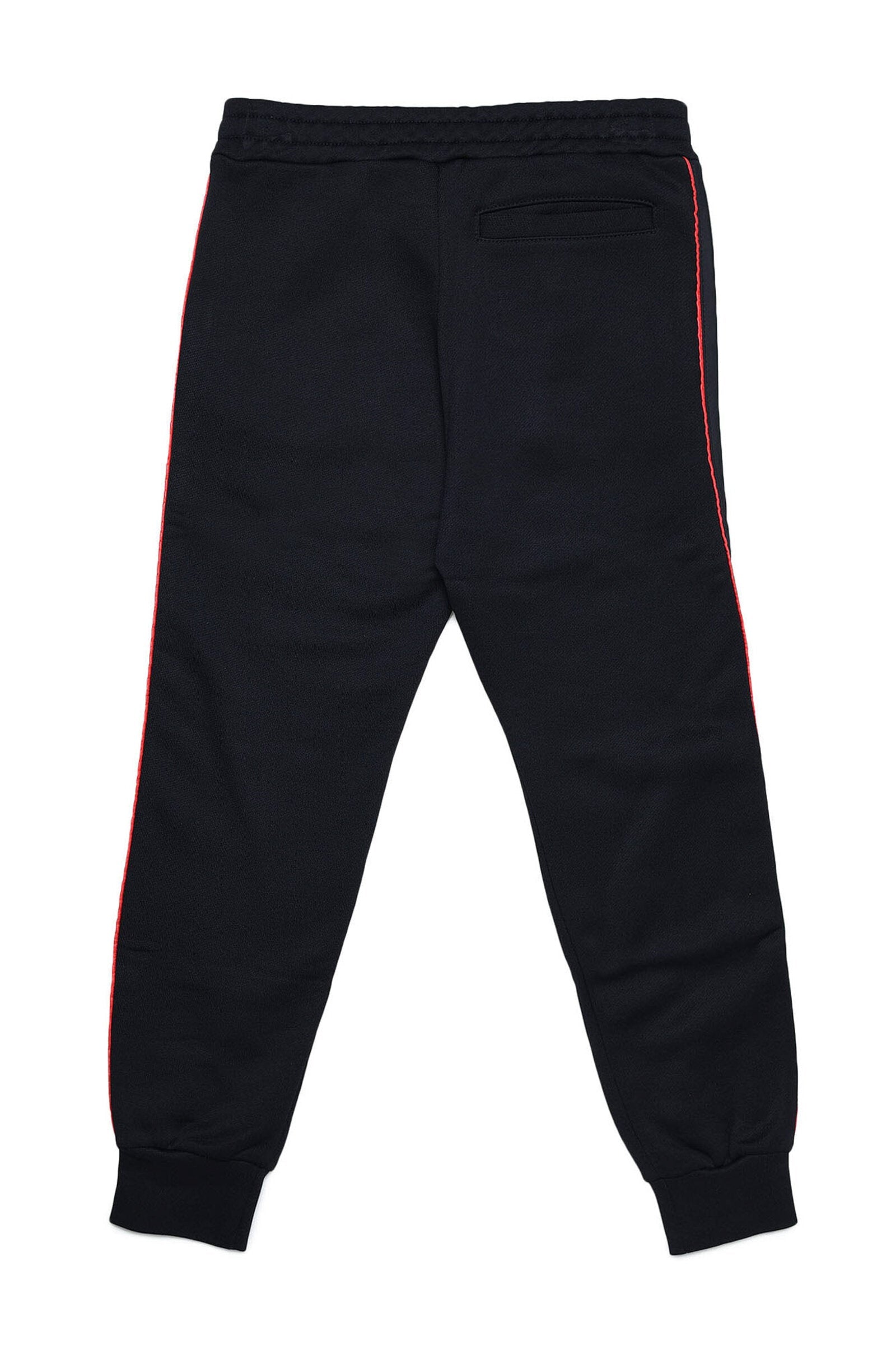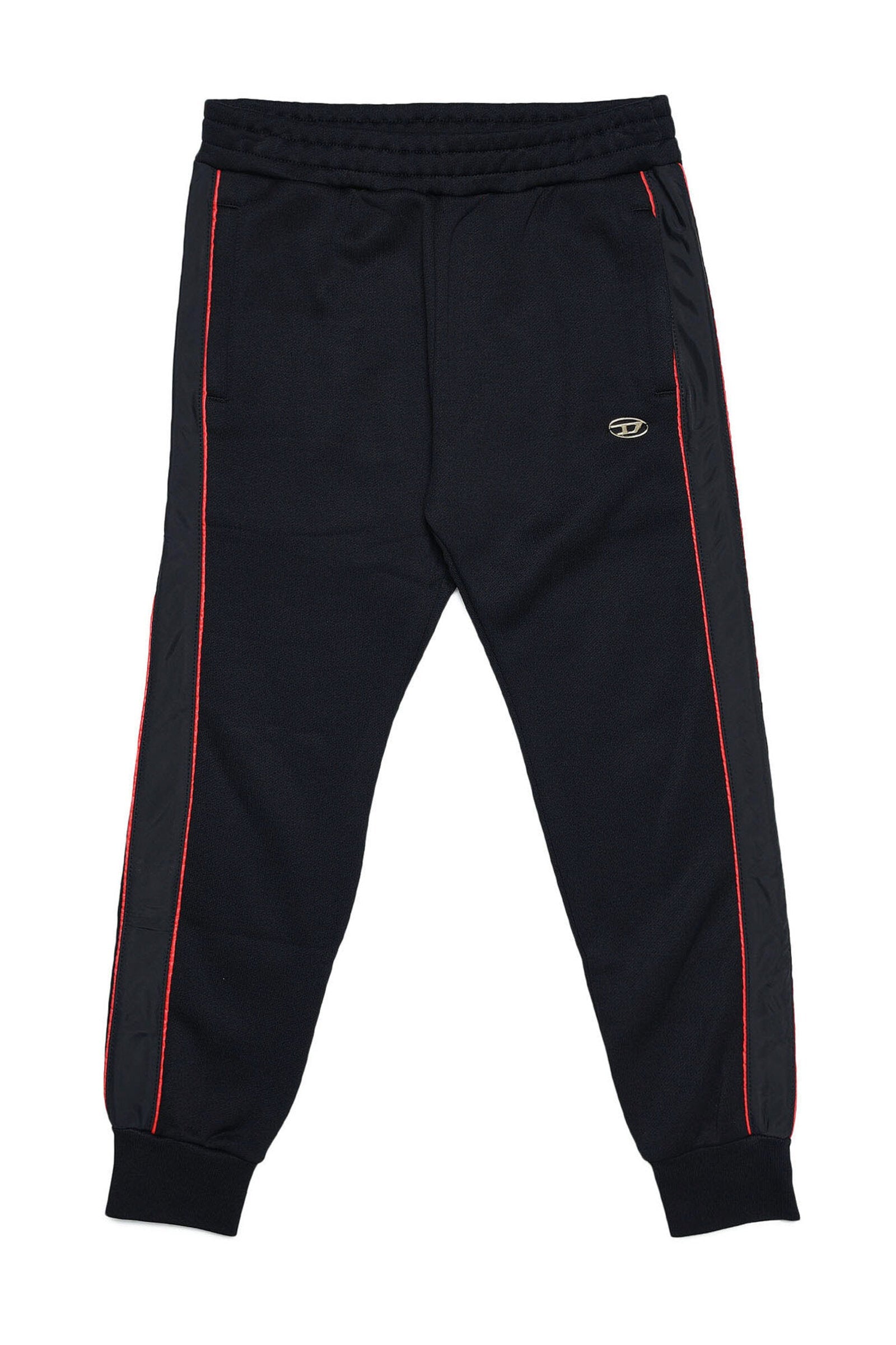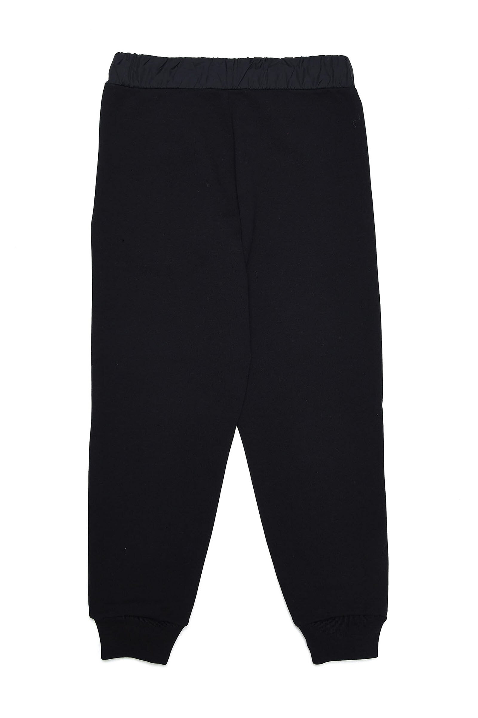 Black joggers with colored logo patch