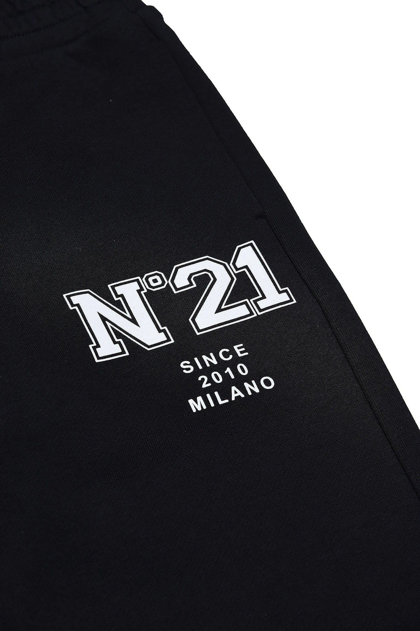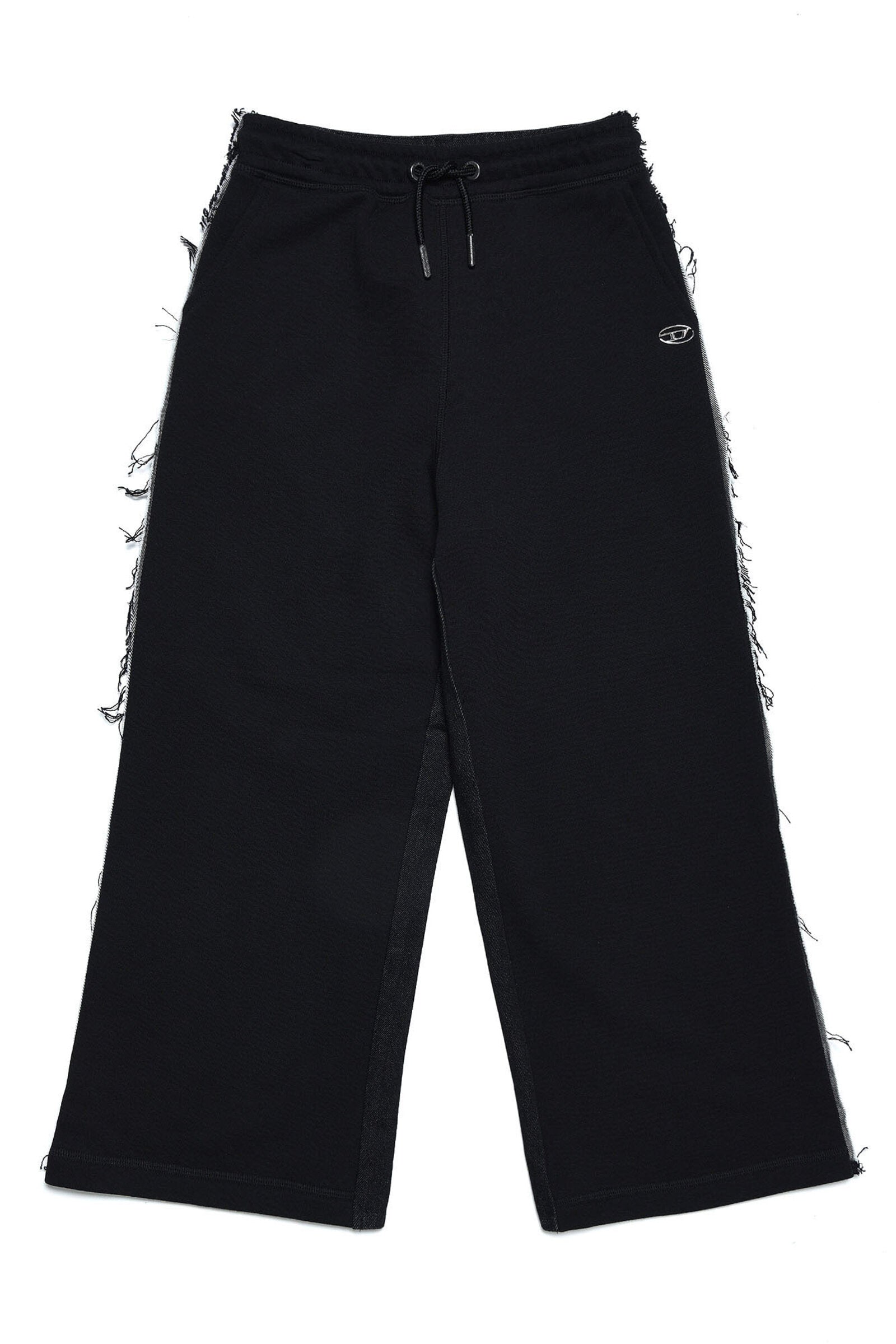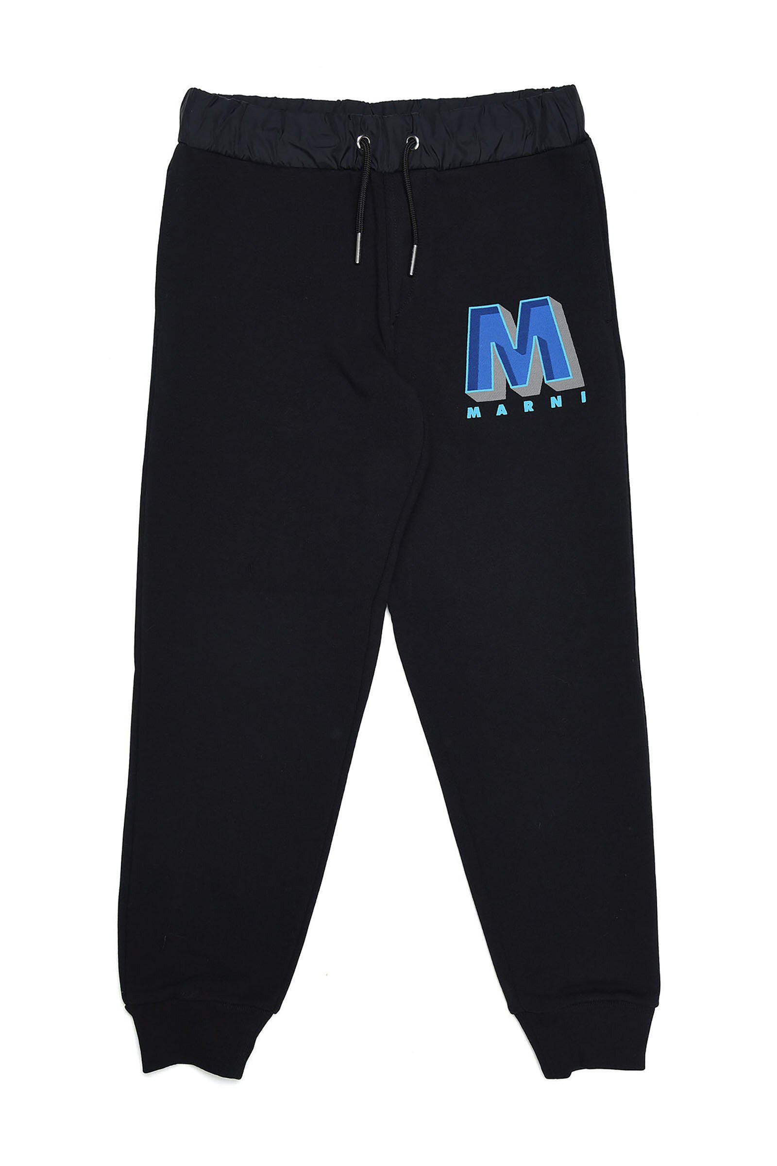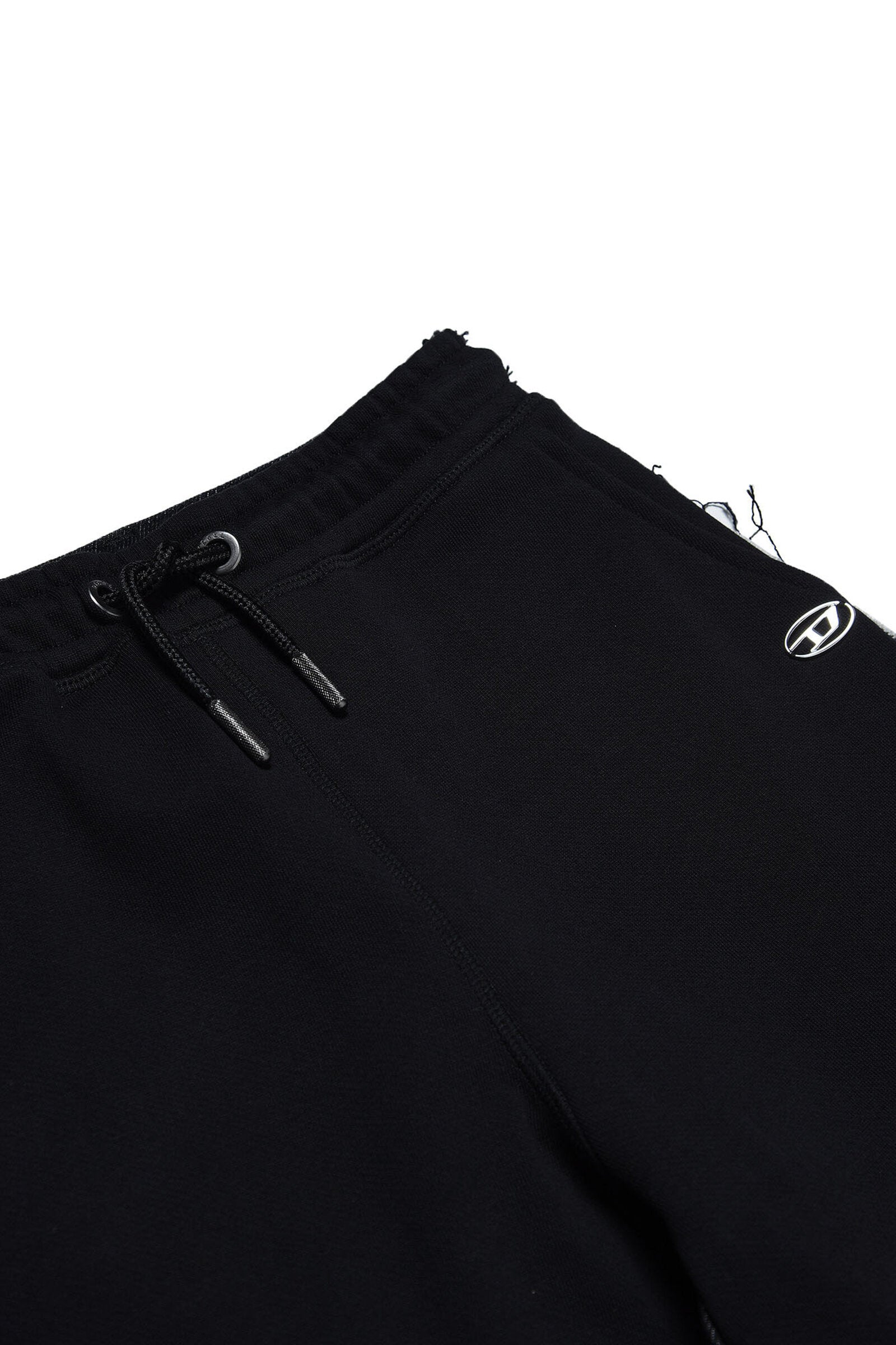 Black joggers with colored logo patch