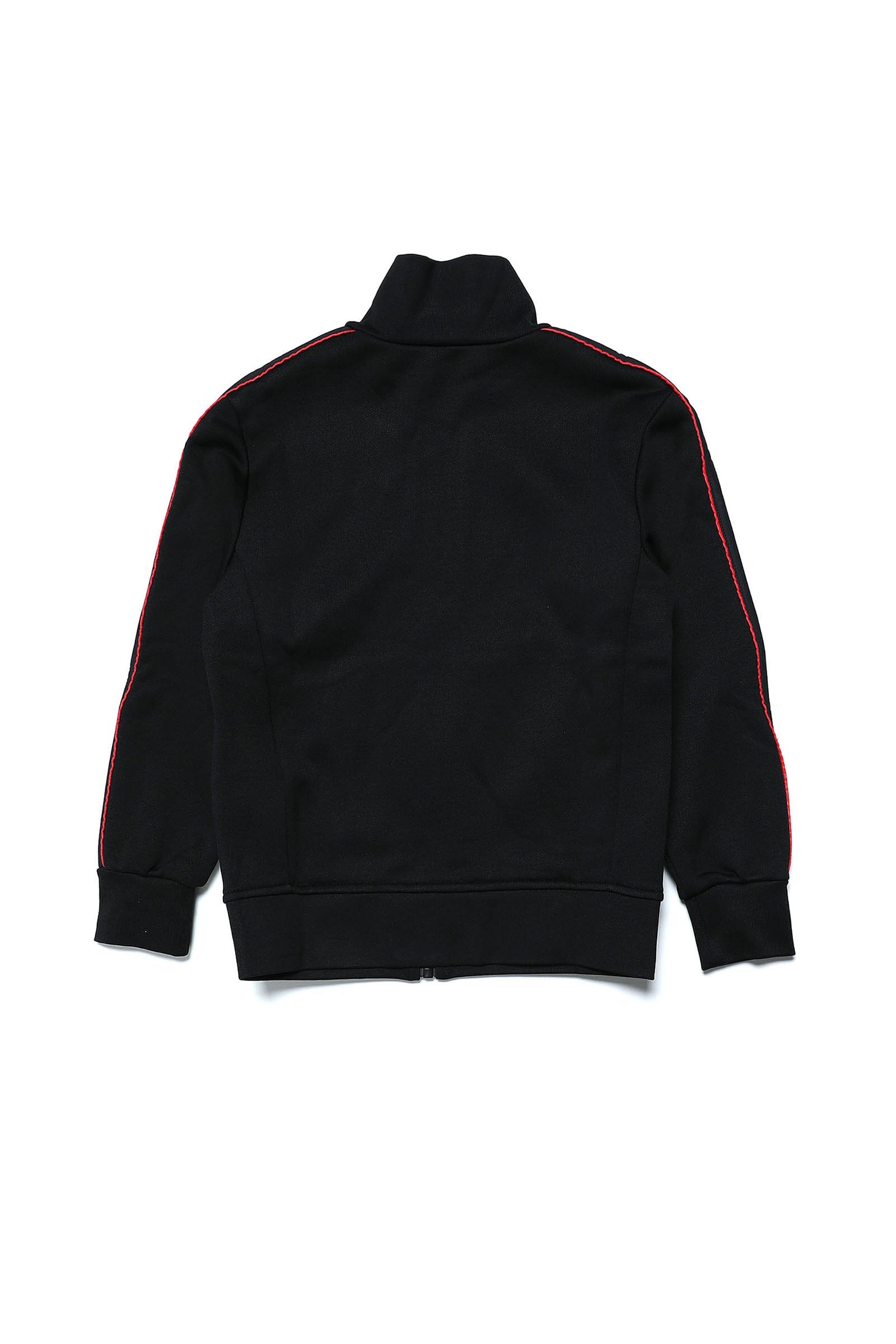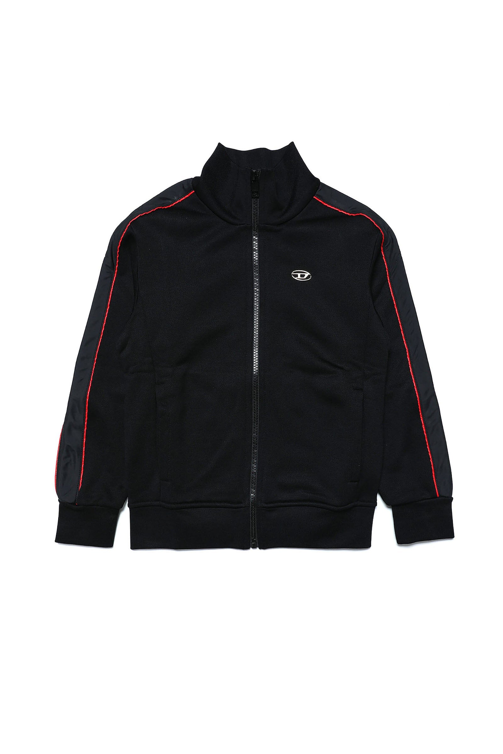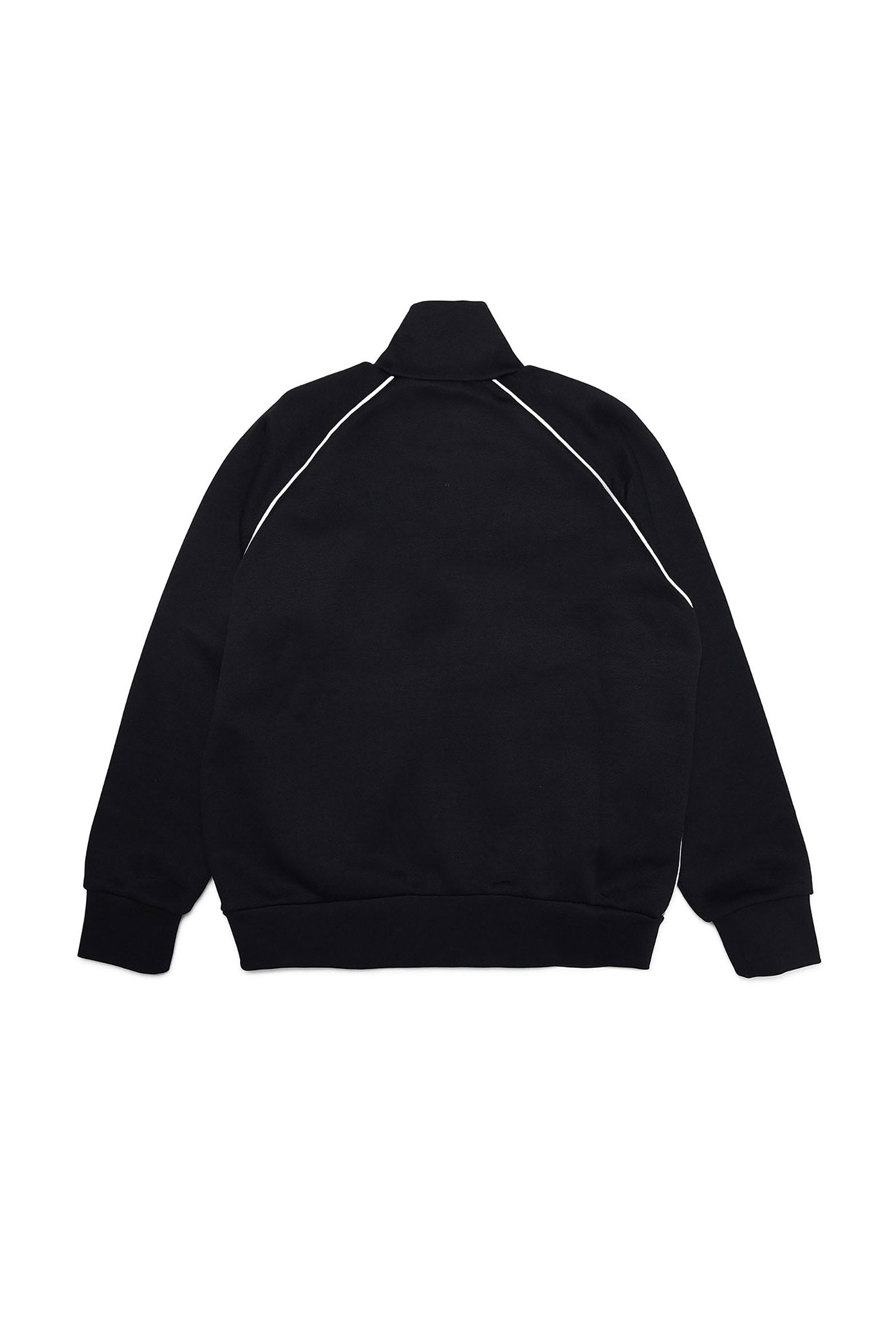 Black sweatshirt with zip and contrast piping.