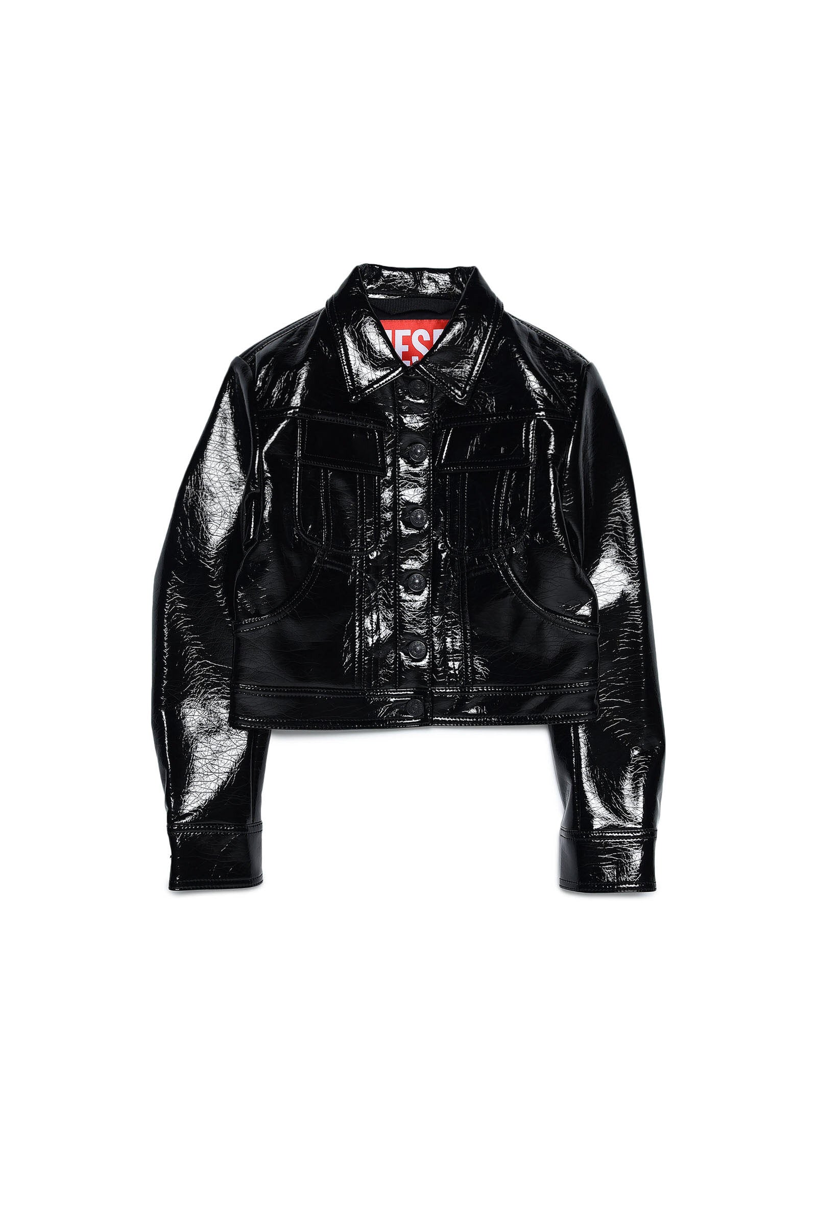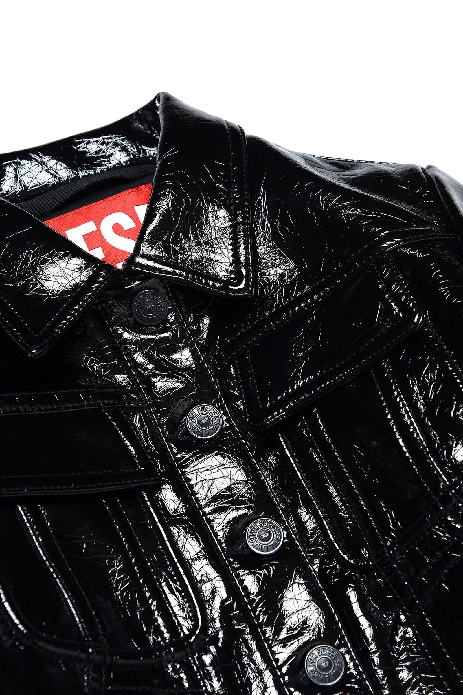 Black vinyl-effect trucker jacket