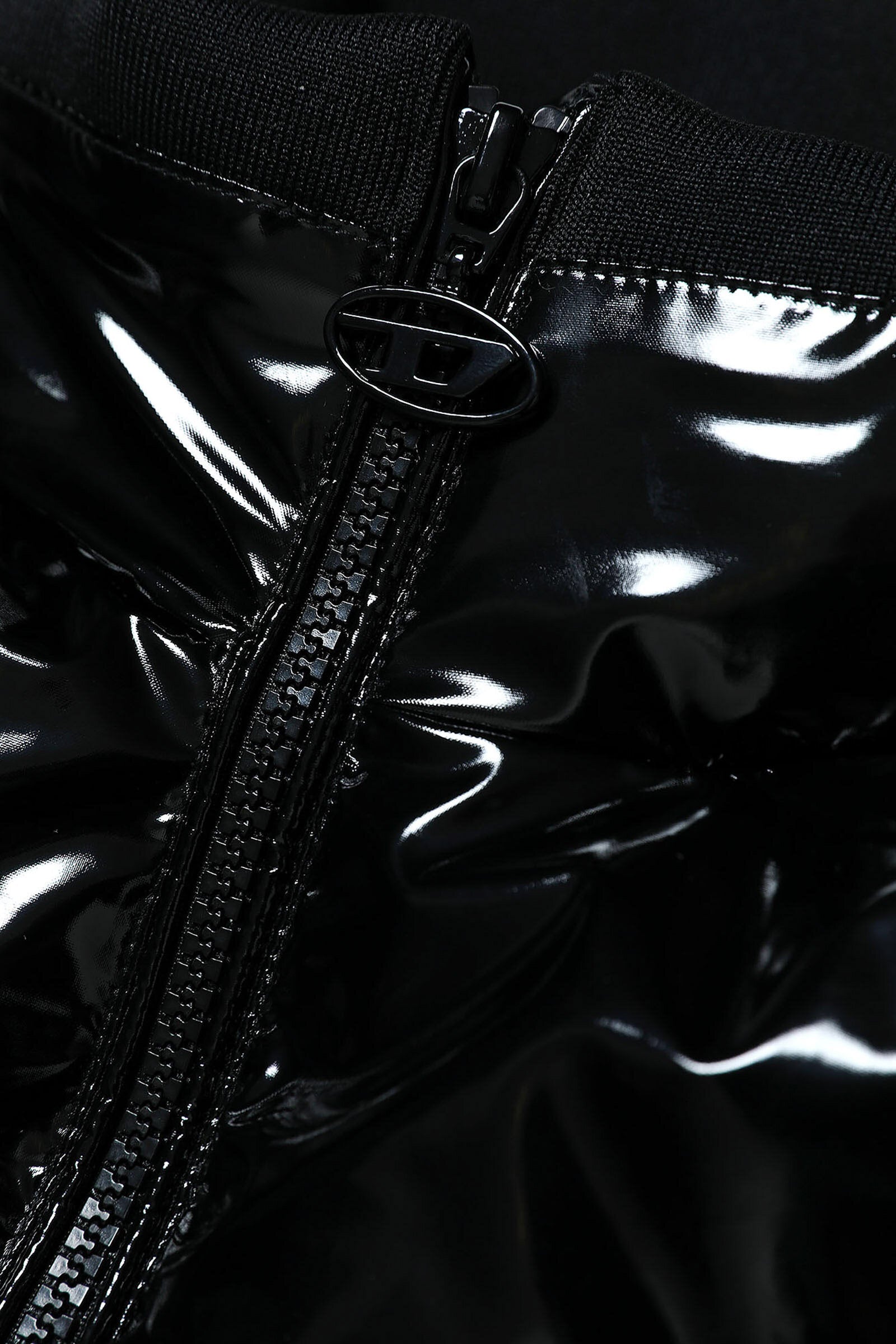 Black quilted jacket in glossy padded vinyl