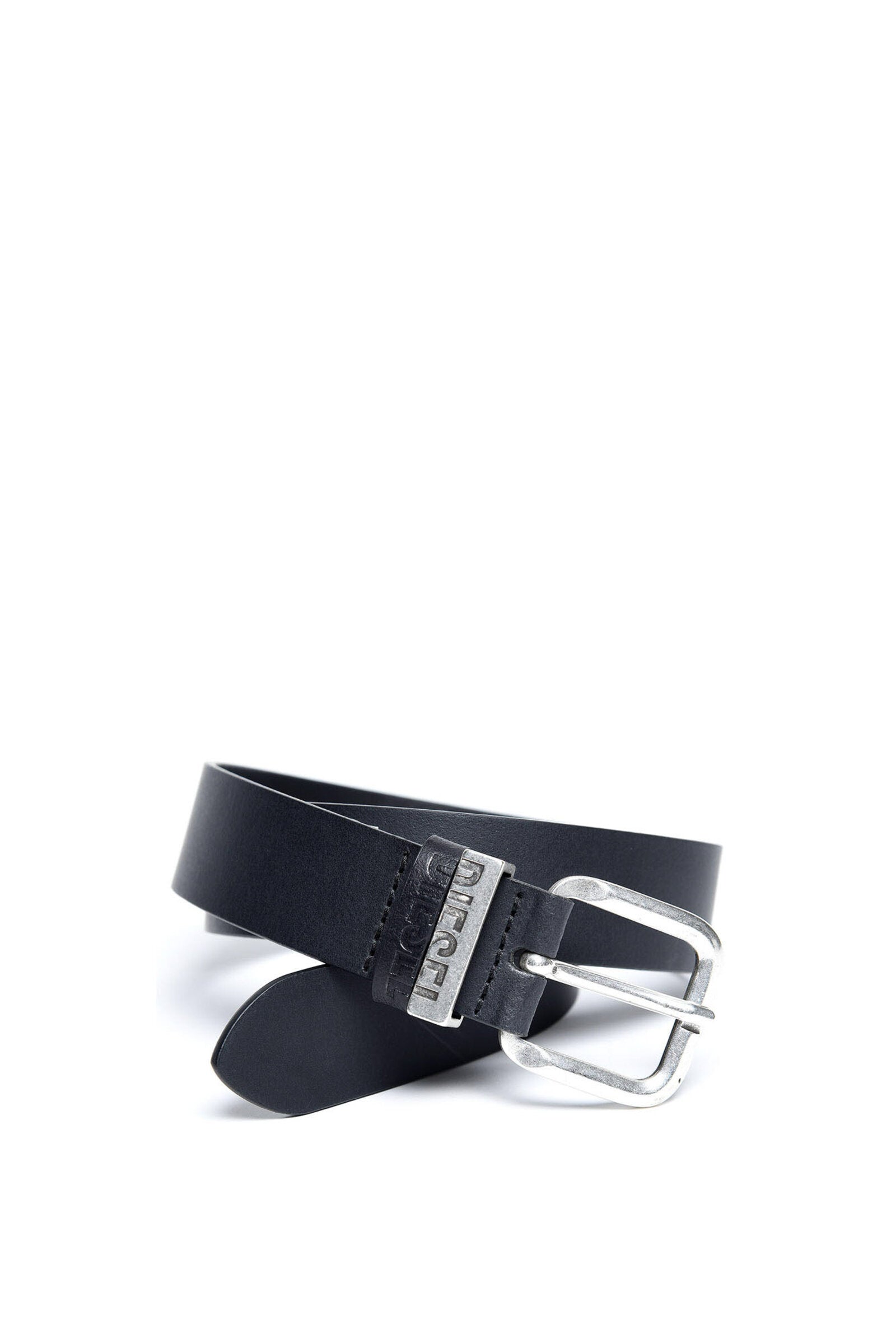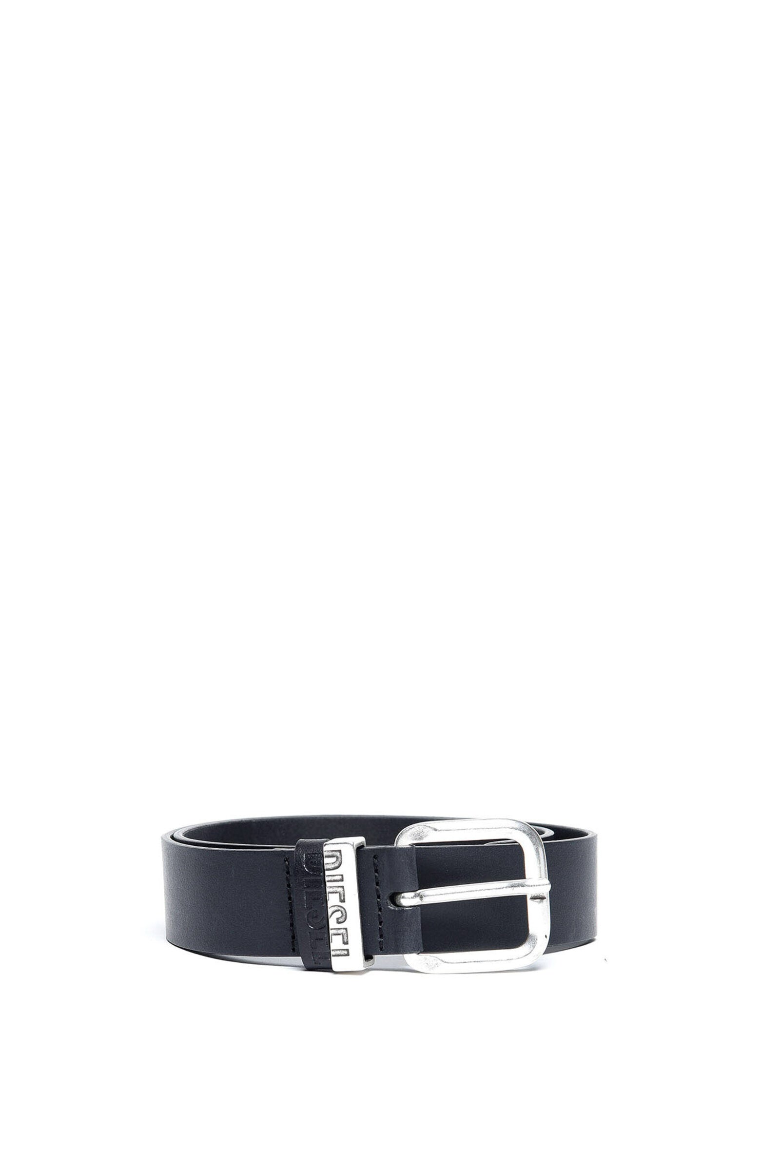 Black leather belt with metal buckle