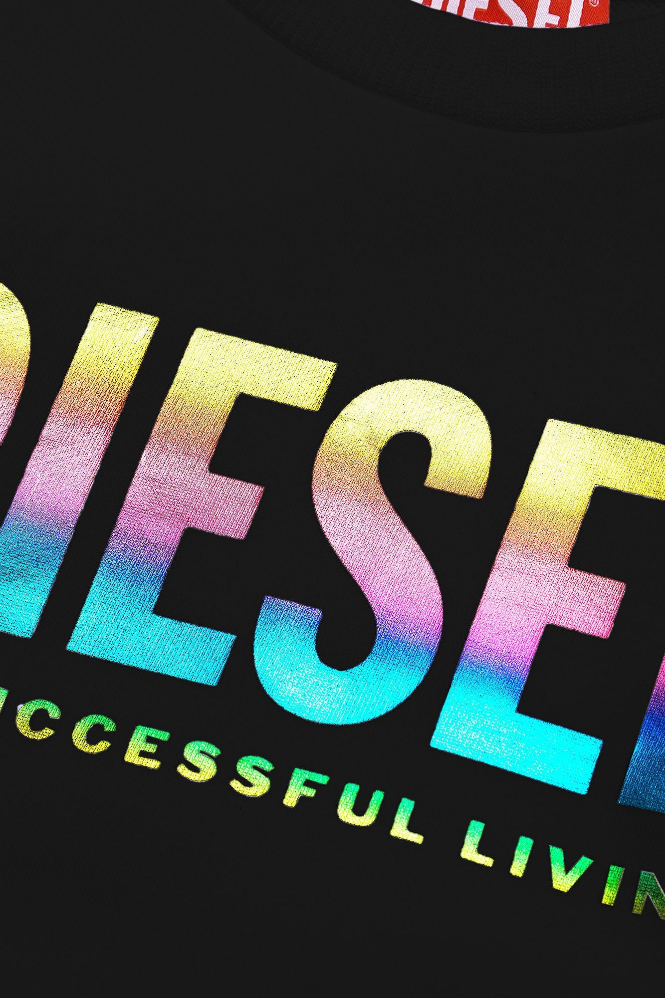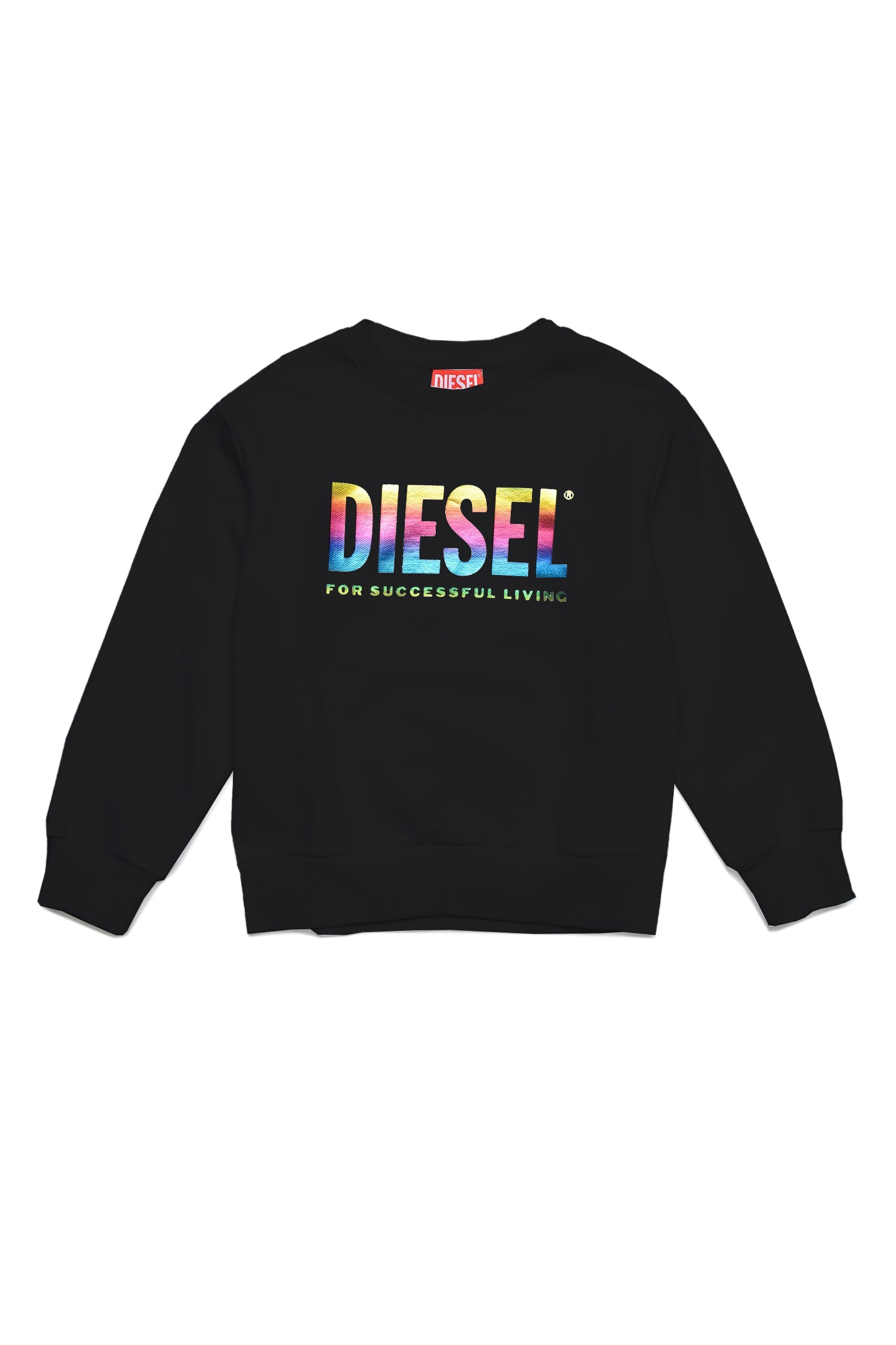 Black sweatshirt with rainbow mylar logo