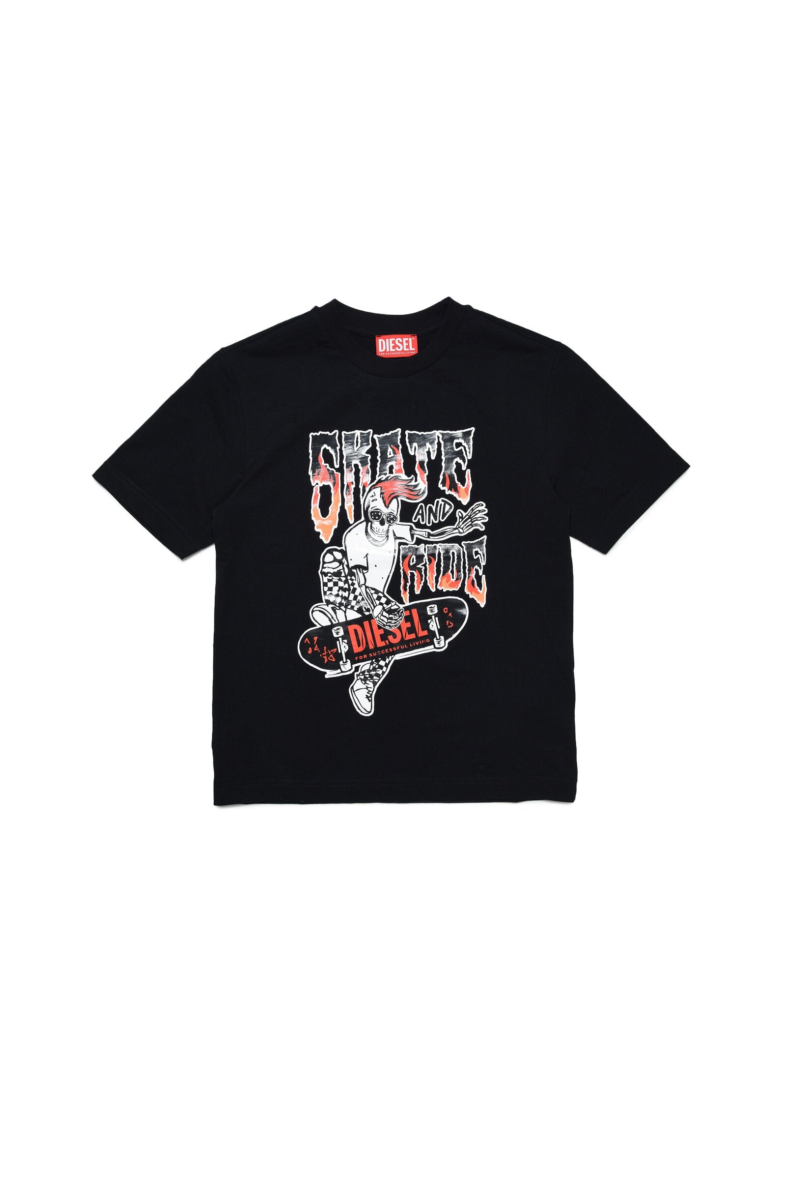 Black t-shirt with skater-style print