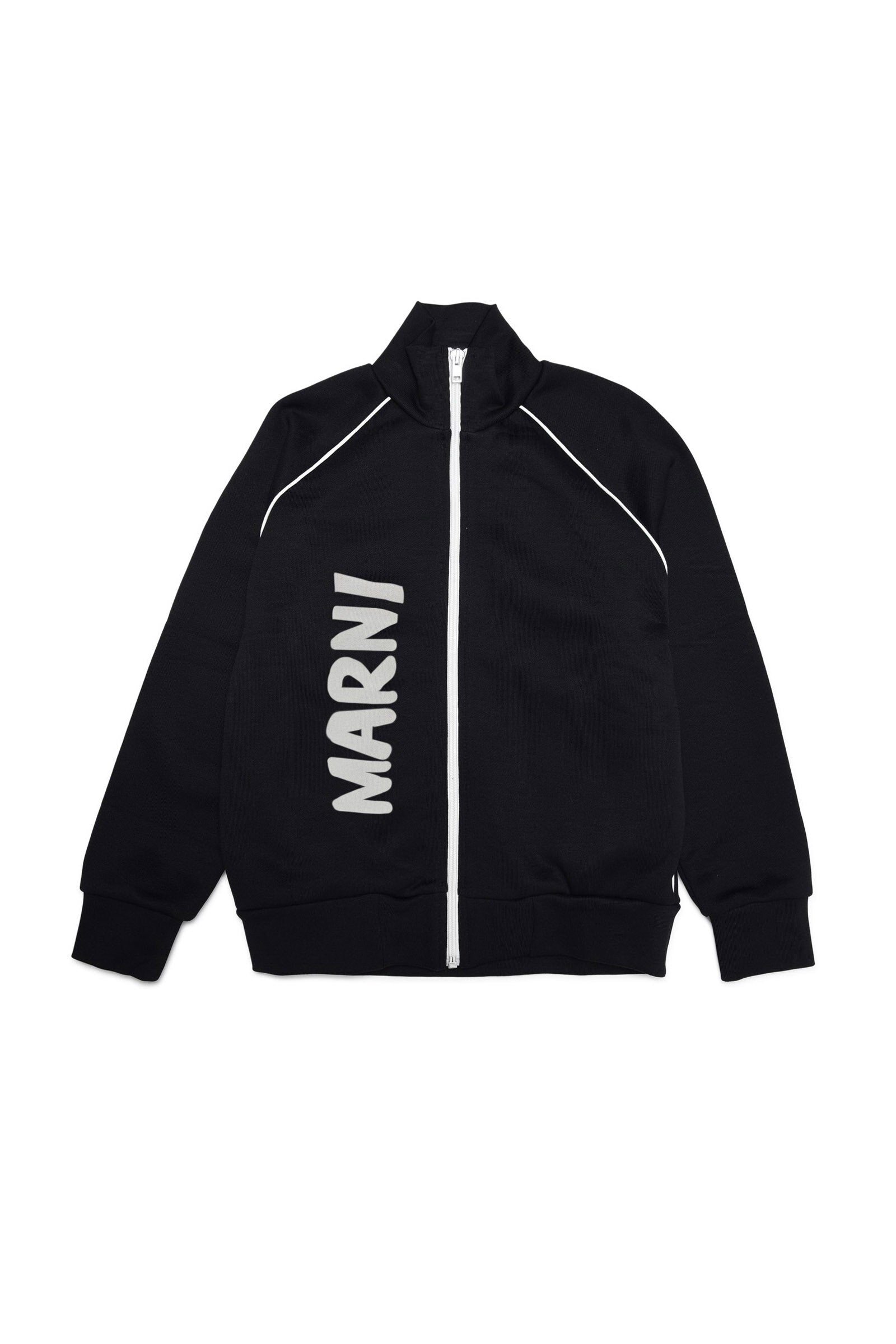 Black sweatshirt with zip and vertical brush Marni logo