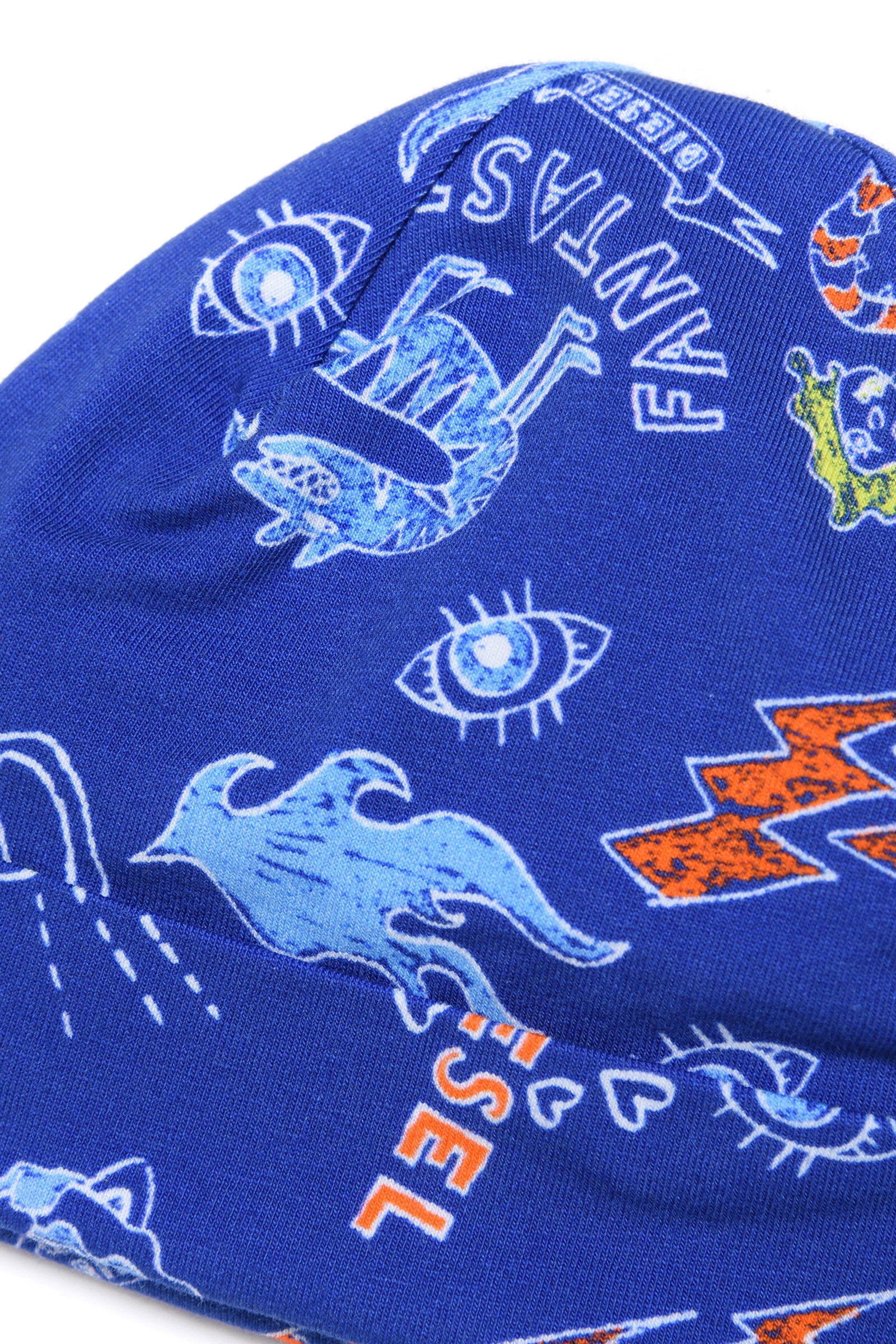 Blue baby beanie with fantastic print