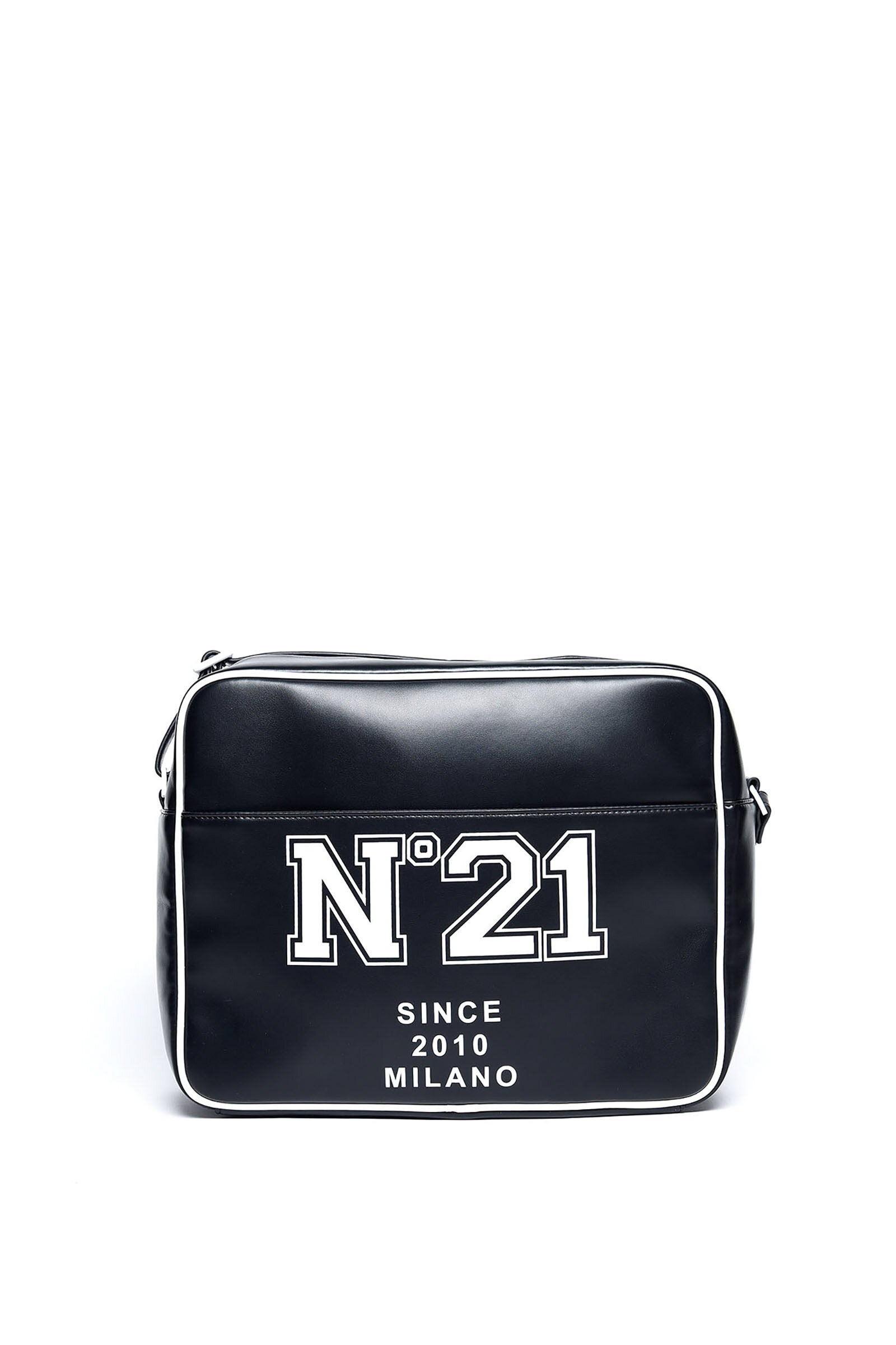 Black shoulder bag with college logo