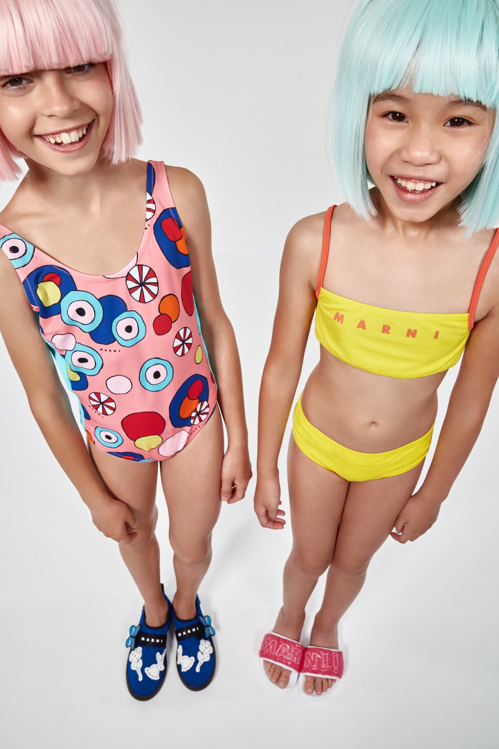 The ideal, indispensable must-haves for the summer! Children have a special connection with water and love to spend their days at the beach or in the pool swimming, running, diving and building sandcastles. Swimsuits, flip-flops, beach towels, bags, accessories and beachwear: on the bravekid.com online shop you will find everything you need for your vacations. Brave Kid offers a wide assortment of swimwear for boys and girls aged from 4 to 16 and newborns aged from 3 to 36 months from major brands such as Diesel, MM6 Maison Margiela, Marni and N°21. Girls can choose from two-piece swimsuits such as Diesel’s florescent bikini and one-piece models such as the romantic pink swimsuit with a bow by N°21. Bright neon colors characterize this summer’s children’s beachwear. So there are plenty of practical, very stylish garments such as the swimming trunks by N°21 and the orange briefs by Diesel. In the children’s beachwear selection we have also included items that allow you to complete children’s beach outfits: sweatshirts, T-shirts, dresses, sun hats, bags, flip-flops and soft, colorful beach towels such as Diesel’s blue cotton terry towel. Ready for a nice dip?