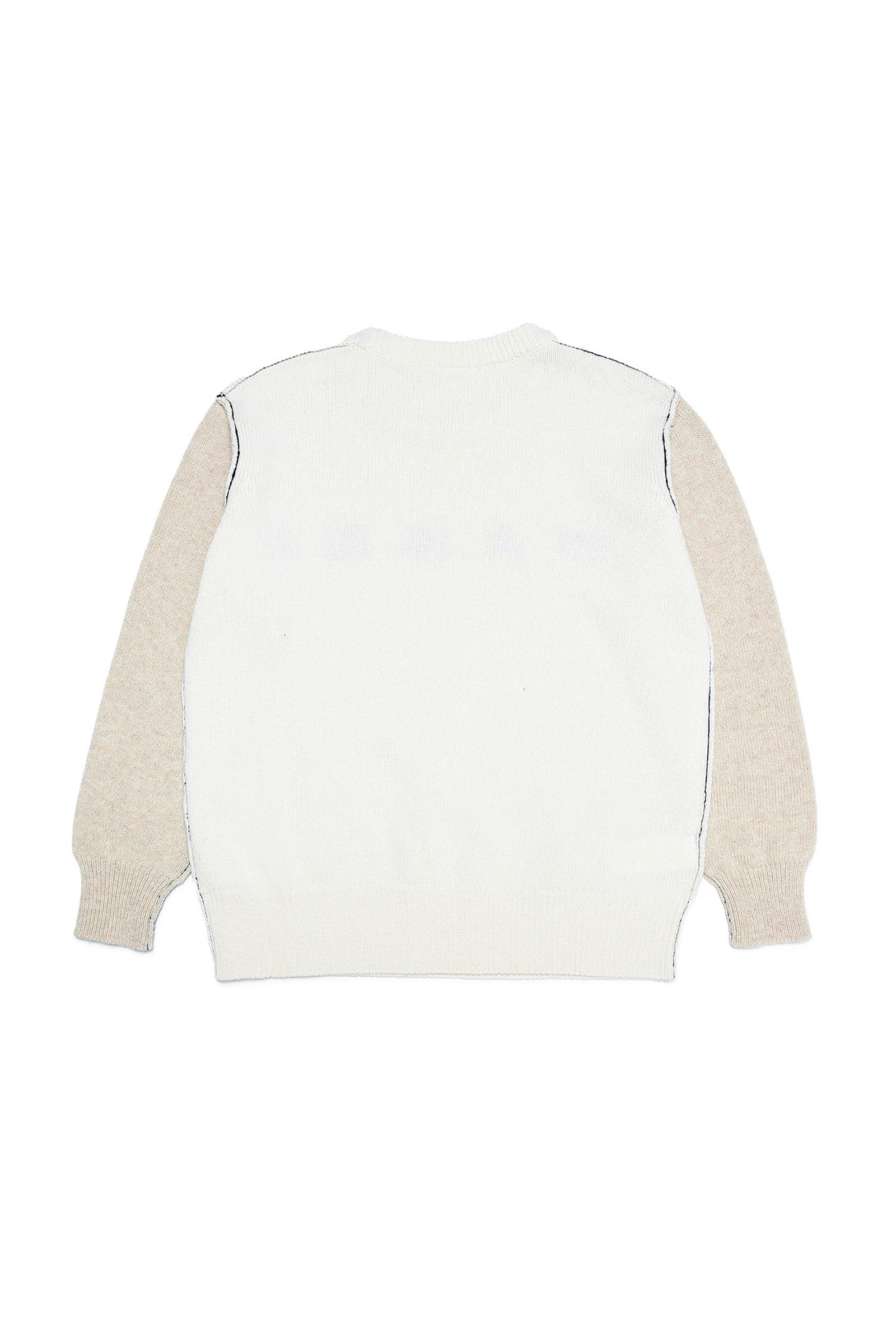 White wool blend sweater with institutional logo