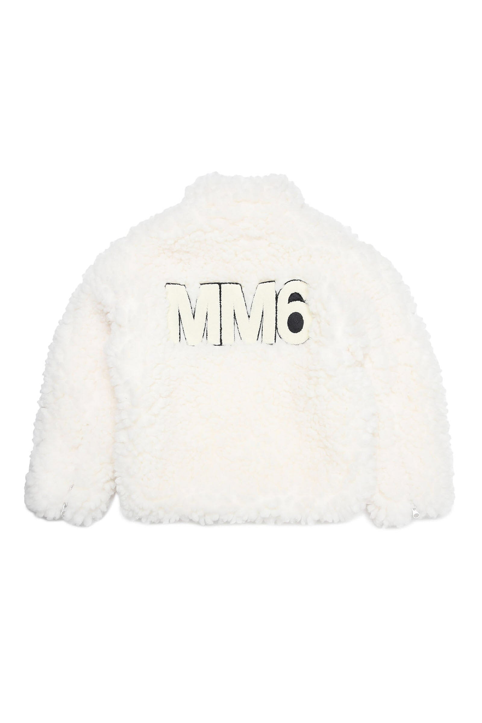 White teddy jacket with slanted zips