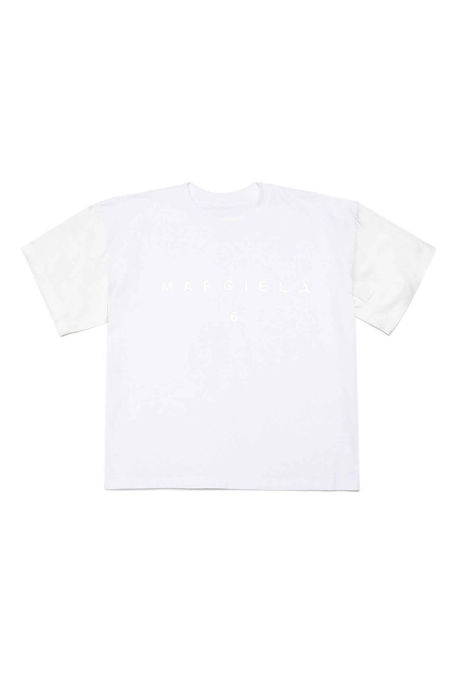 White T-shirt with Margiela 6 displaced logo