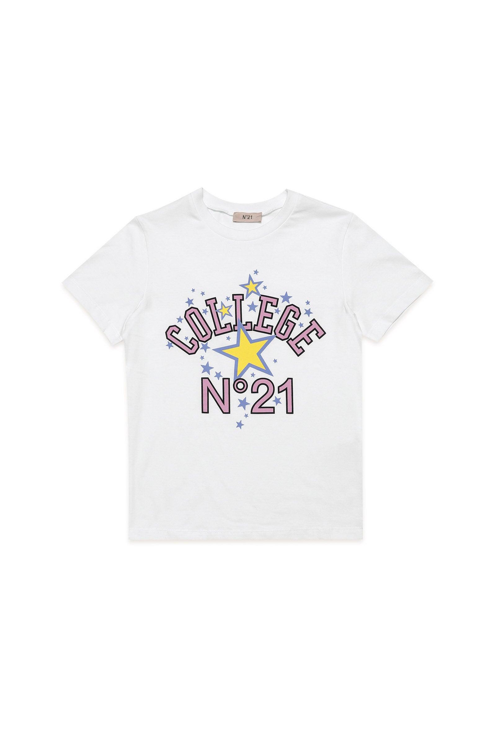 White t-shirt with college print