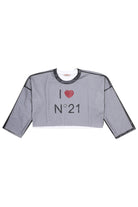 Cropped sweatshirt, crew-neck model, with contrasting N°21 logo and black tulle detail.