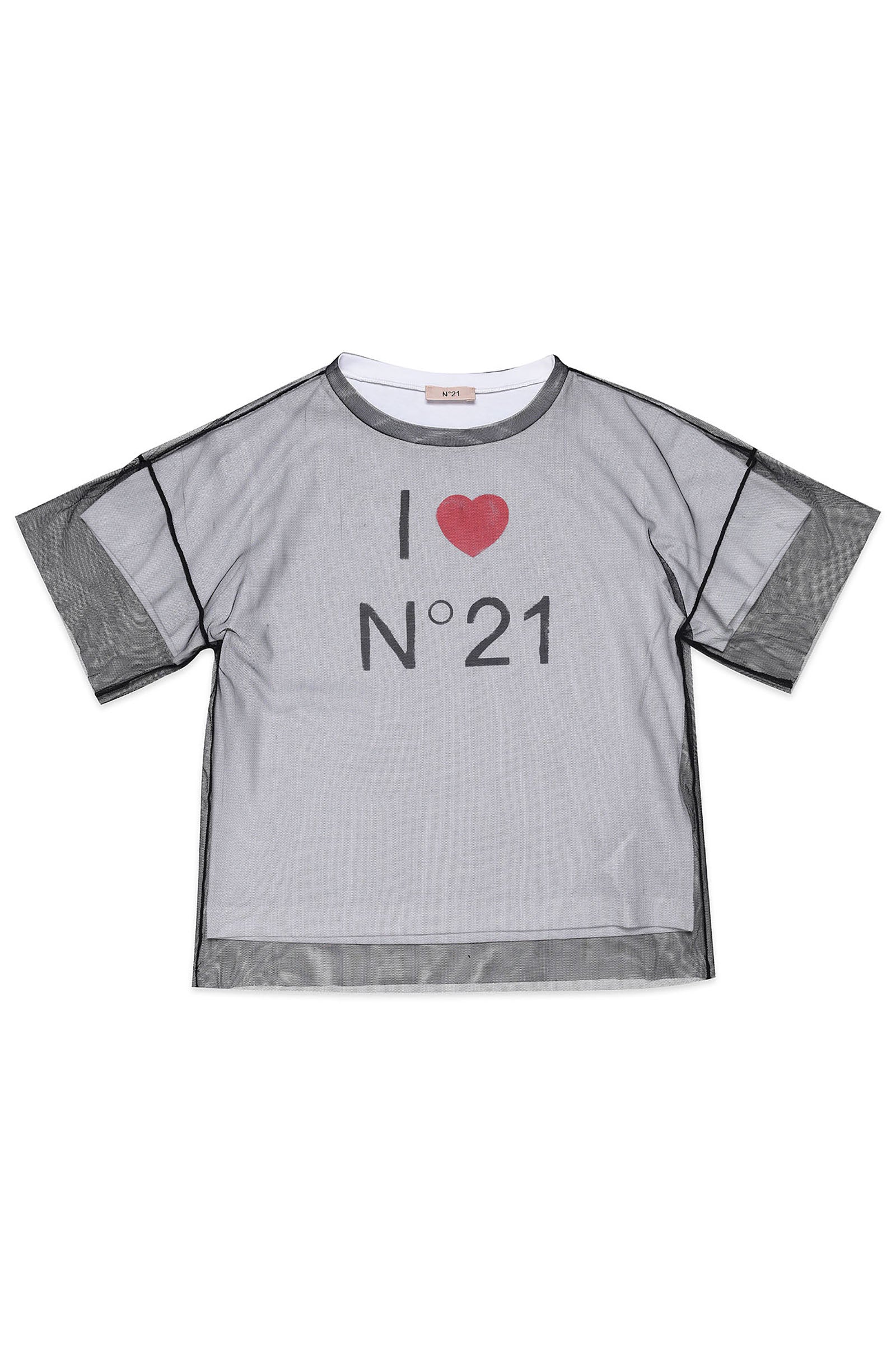 Cropped gray T-shirt with I love N°21 logo