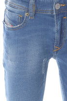 Skinny jeans made of JoggJeans® for maximum comfort. With narrow leg from thigh to ankle and medium blue wash with micro-tears on the front.