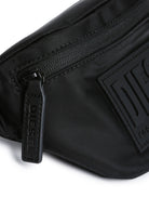 Black Diesel logo pouch with one main compartment featuring a front zip pocket. Adjustable waist strap. 30 cm (L) x 14 cm (H) x 8 cm (W).