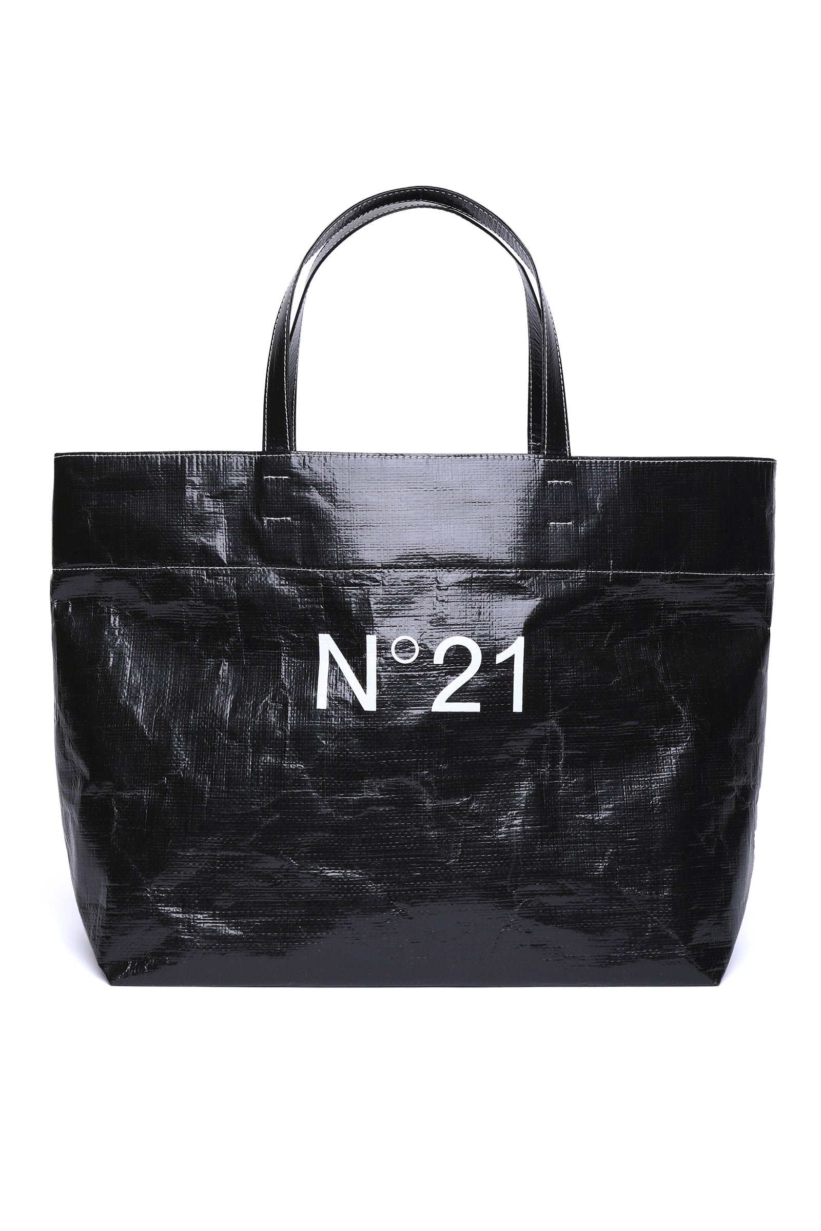 Bag, shopper model, with handles and contrasting white front logo. 47 cm (L) x 31 cm (H) x 16 cm (W).