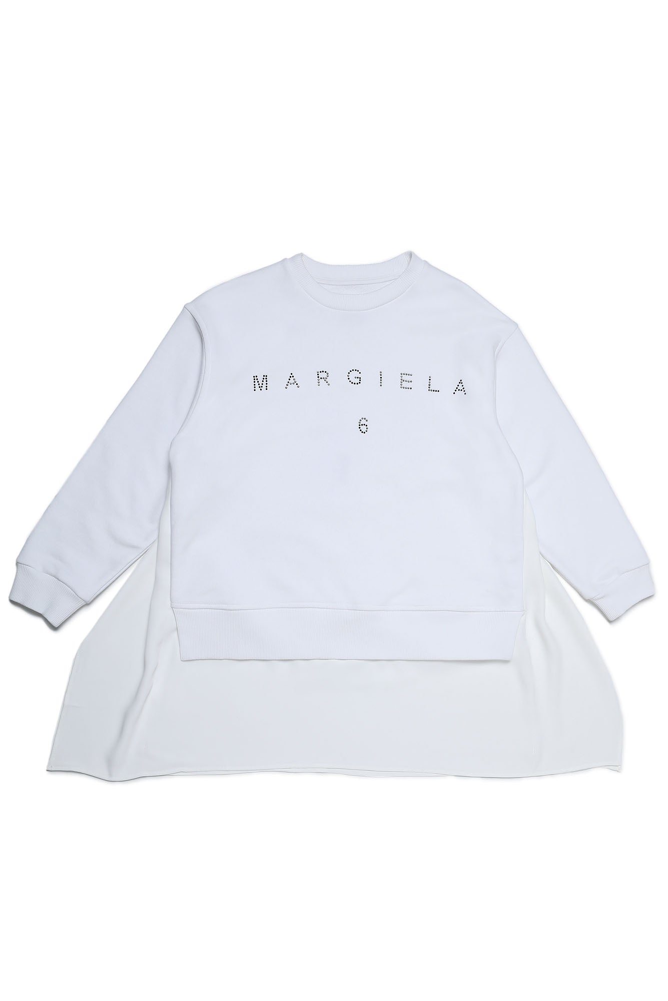 Crew-neck dress, long-sleeved, with side fabric inserts detail with ribbed finish on the collar, cuffs and hem. Studs detail to form the central Margiela 6 lettering.