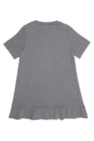 Crew-neck dress, short-sleeved, with contrasting buttons detail on the shoulders, maxi front pocket with N°21 logo and ruffles on the hem. Made of 100% cotton.