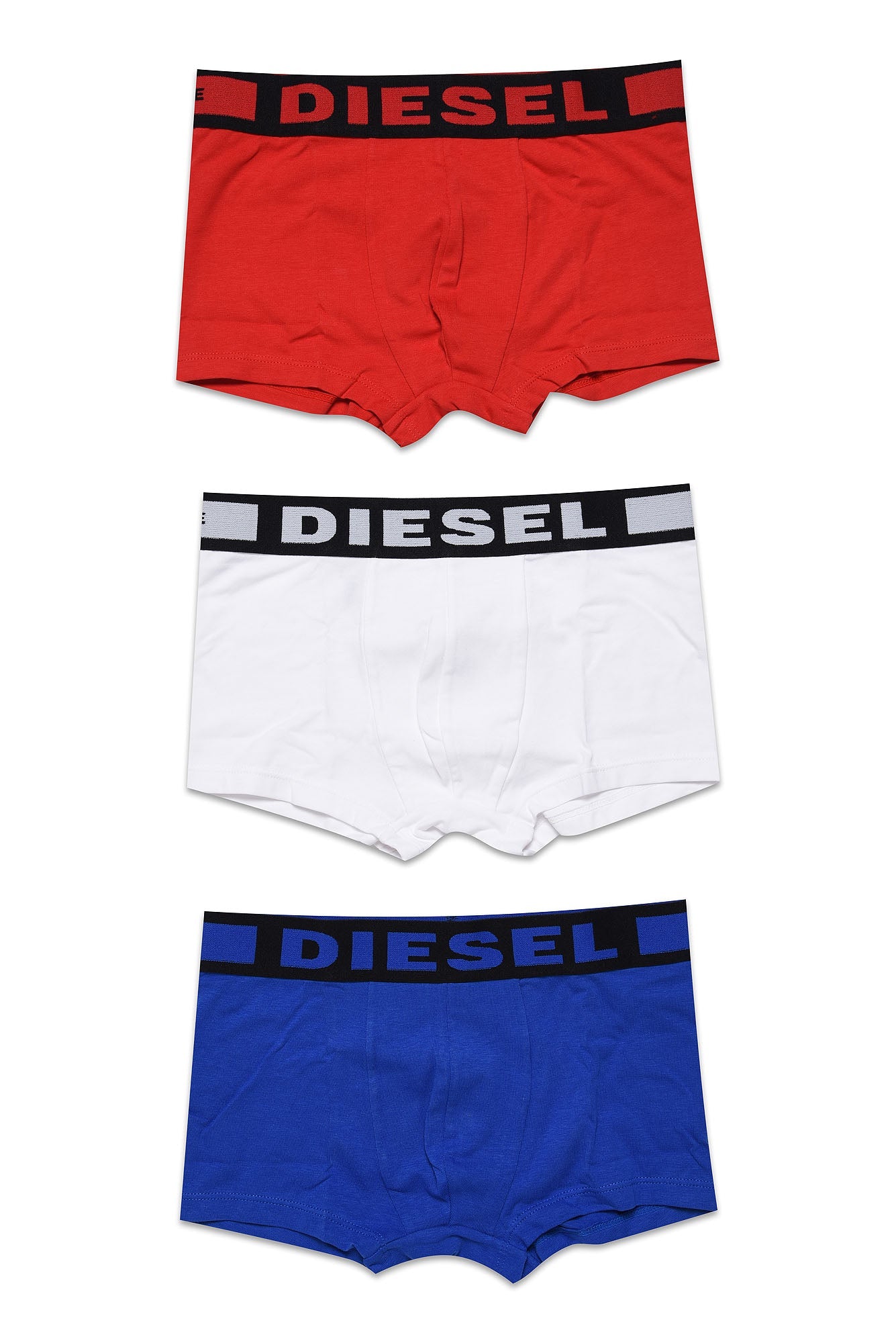 Set with three boxer of various colors in soft stretch cotton. The elasticated waist is decorated with the contrasting Diesel logo.