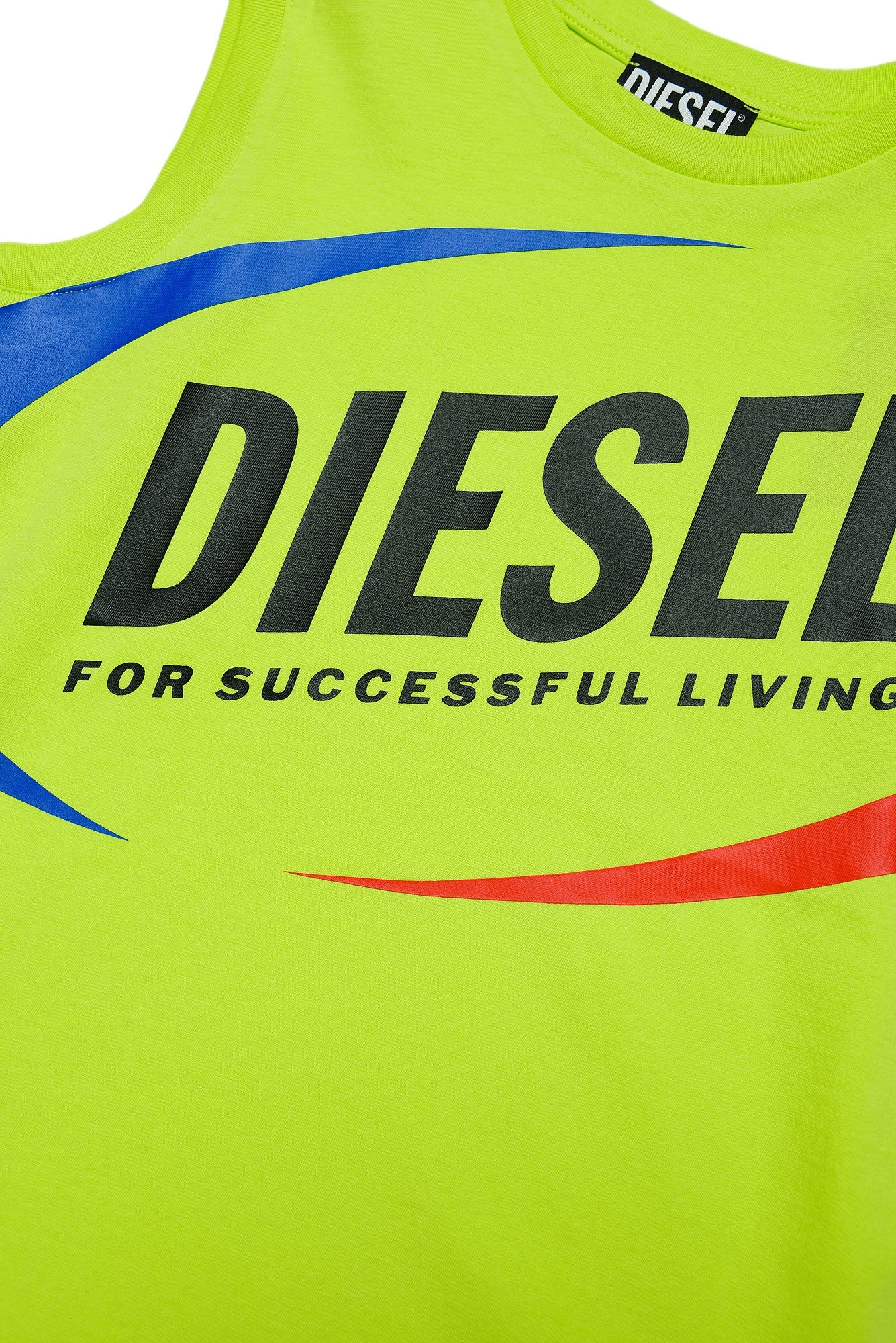 Wide-shoulder, crew-neck tank top with front maxi Diesel logo detail. Made of 100% cotton.