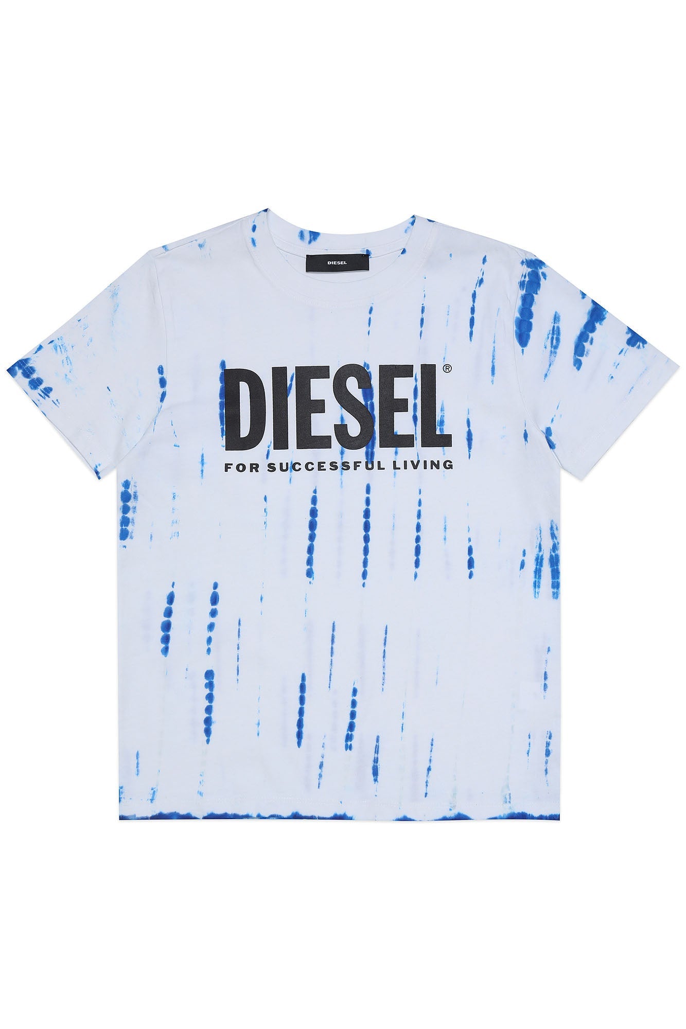 Short-sleeved crew-neck T-shirt with tear drop tie dye wash and front Diesel logo detail. Made of 100% cotton.