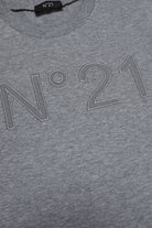 Melange gray T-shirt, crew-neck model, short-sleeved, with tone-on-tone N°21 logo appliqué. Made of 100% cotton.