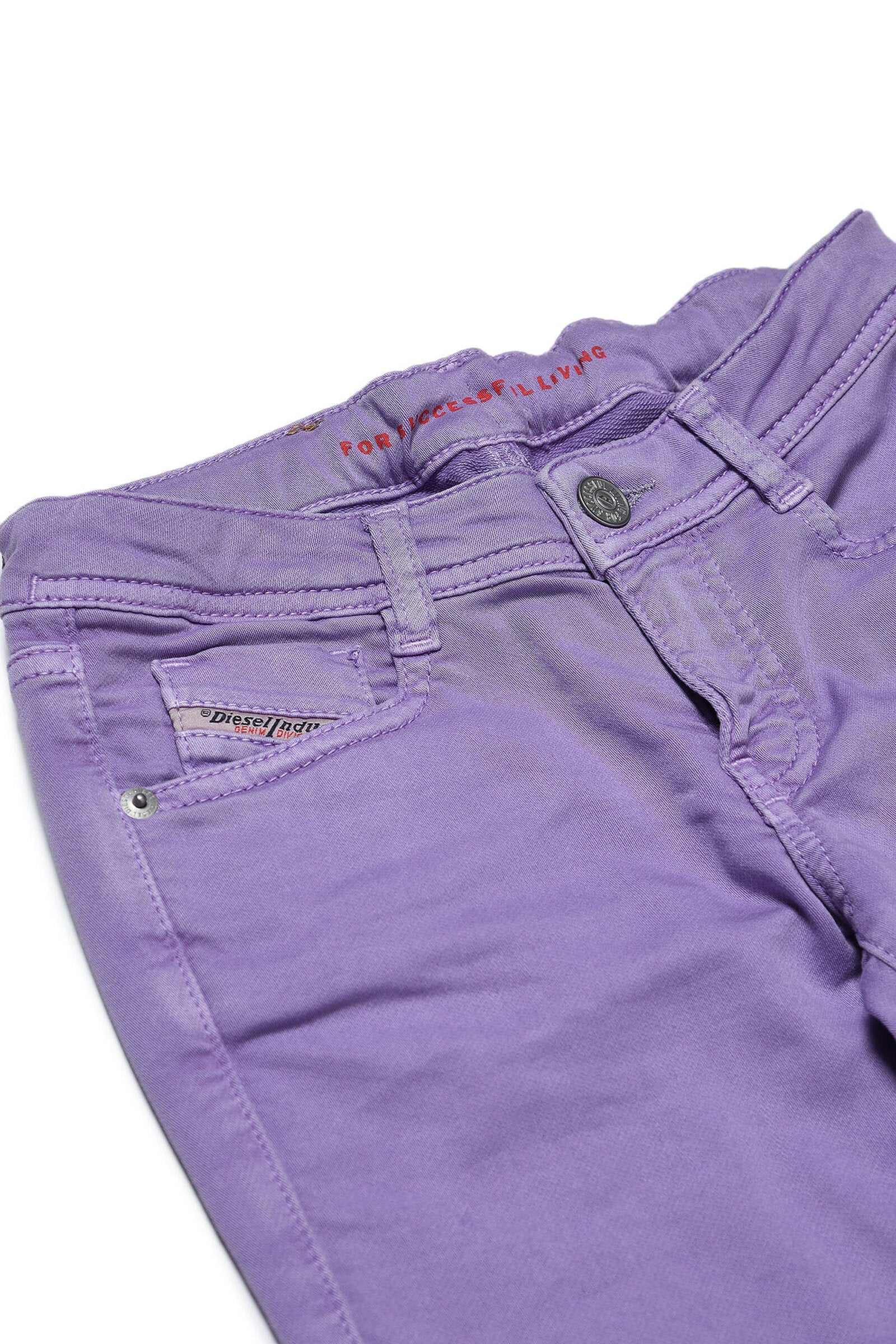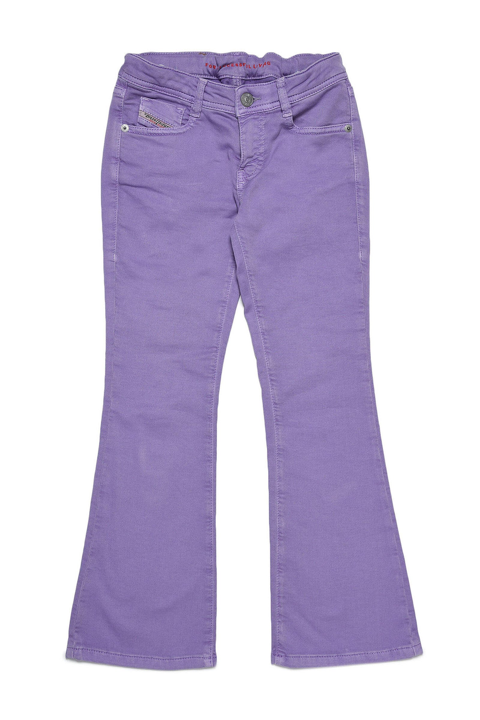 Five-pocket jeans, made of JoggJeans® to guarantee maximum comfort, bootcut fit, low rise, Bohemian attitude, in lilac.