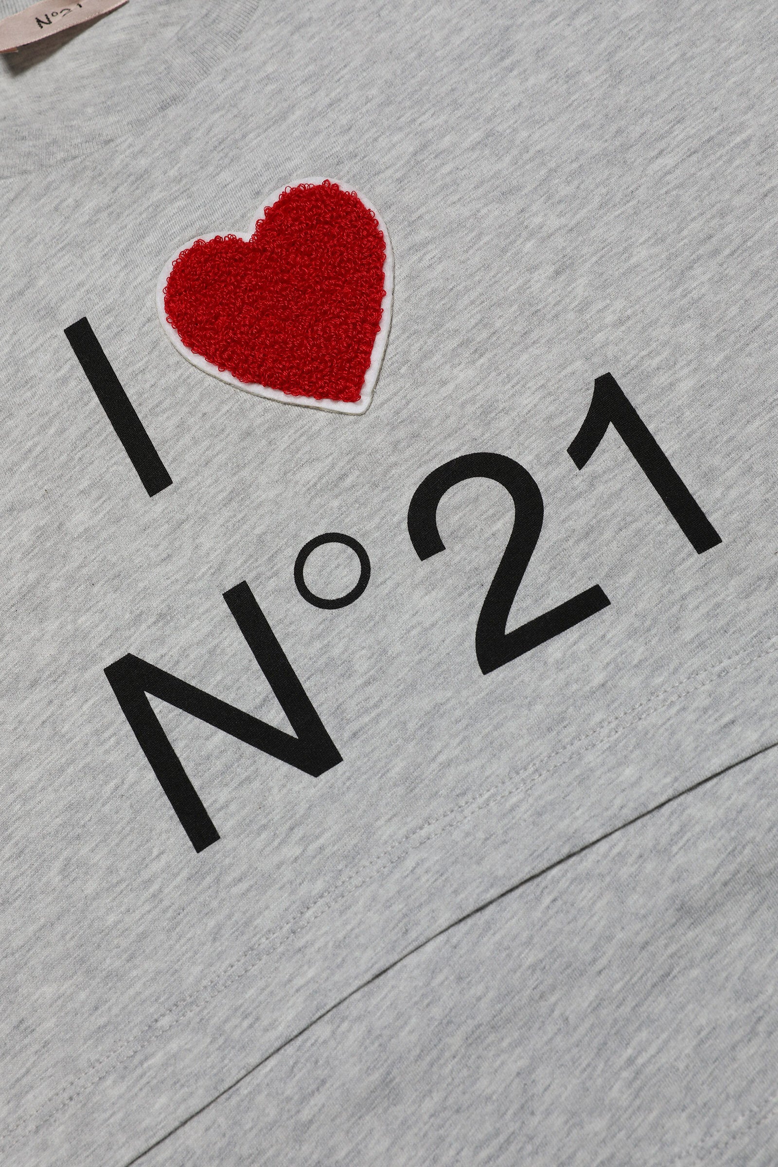 Short-sleeve, crew-neck cotton jersey gray cropped T-shirt with stitching on the hem and I love N°21 front logo detail. Terry heart application.