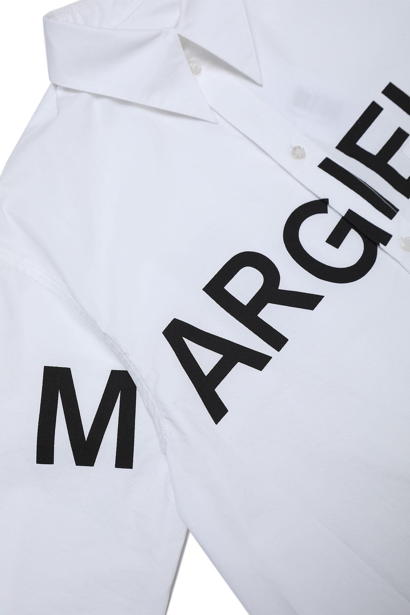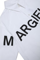 Dress, classic shirt model with collar, long-sleeved with cuff, with front button closure, and front Margiela 6 contrasting lettering detail. Made of 100% cotton.