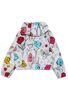 Waterproof hooded jacket, long-sleeved, with front zip closure and big grass all-over print.