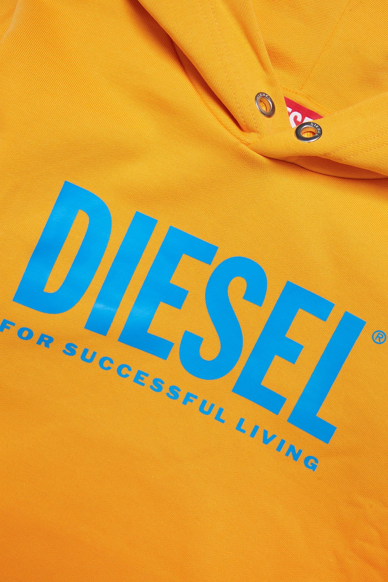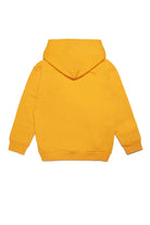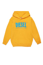 Long-sleeve yellow hooded sweatshirt in French Terry cotton with ribbed finish on cuffs and hem and contrast Diesel logo print detail.