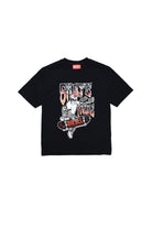 Black t-shirt with skater-style print